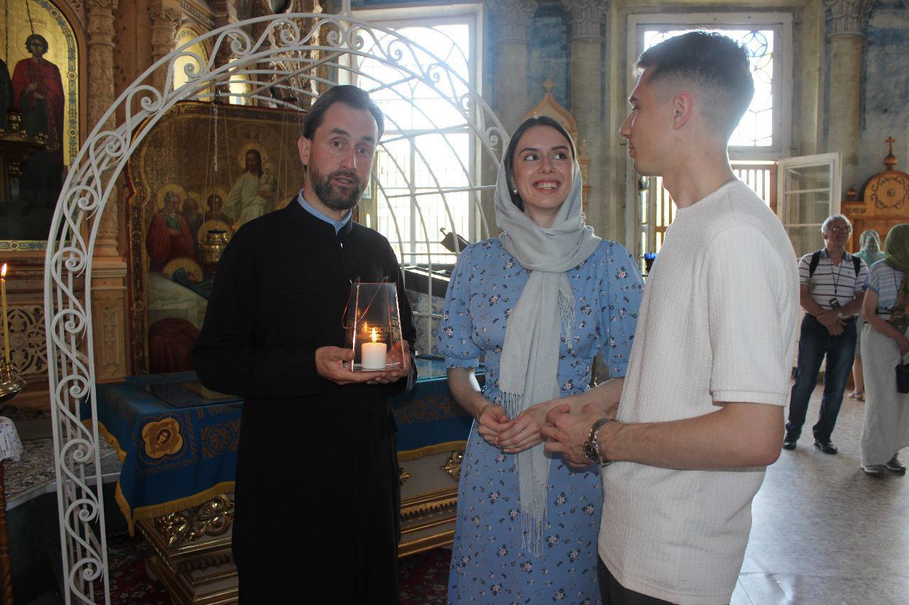 Молодожены с благодарностью передали огонь в Успенский собор Мышкина.
