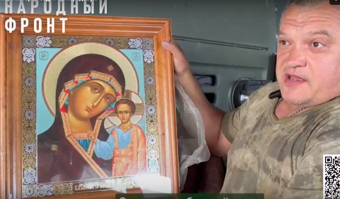 Солдат заворачивает икону в бронежилет, укутывает одеялом. Там, где жизнь и смерть ходят особенно близко, парни трогательно берегут образ Богородицы и сами под её покровом чувствуют себя в безопасности, рассказывают в Народном фронте.