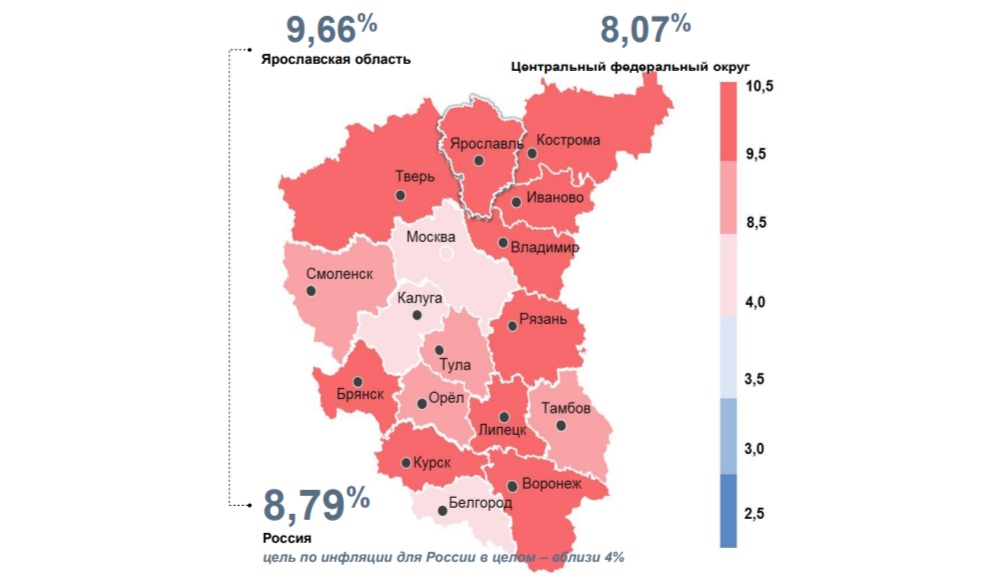 Годовая инфляция составила 9,66%, что выше, чем в целом по стране.