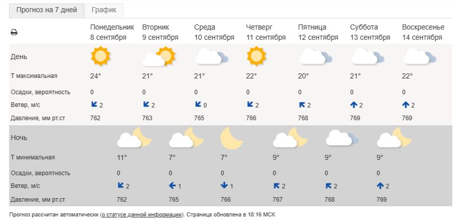 К концу недели постепенно температура будет падать. Это связано с тем, что день становится короче, солнечный прогрев уменьшается, и воздушная масса остывает.
