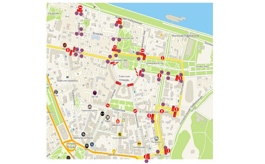 На участках улиц Кедрова, Советской, Кирова, Нахимсона, Андропова, Первомайской, Советской площади, площади Челюскинцев, Народном переулке и Советском переулке с 7:00 до 21:30 вводится временное ограничение движения транспорта. Также на указанных участках с 19:00 24 июня до 21:30 25 июня, вводится временное ограничение остановки и стоянки машин.