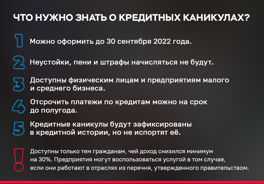 Сегодня в регионе не работает целый ряд сетевых магазинов и компаний, которые торговали товарами из западных стран. Ряд предприятий испытывает трудности с поставками и логистикой, сокращает производство, а значит, и работников. У людей возникают проблемы с деньгами, в том числе – с погашением кредитов. Здесь на выручку могут прийти кредитные каникулы. Чтобы банк дал 6-месячную отсрочку по платежам, нужно соответствовать определенным условиям: иметь снижение дохода как минимум на 30%, а размер кредита должен быть в пределах установленного правительством лимита. Но если под эти критерии вы не подходите, то все равно идите в банк и договаривайтесь о реструктуризации на его условиях – это может быть пауза в платежах или снижение их размера.