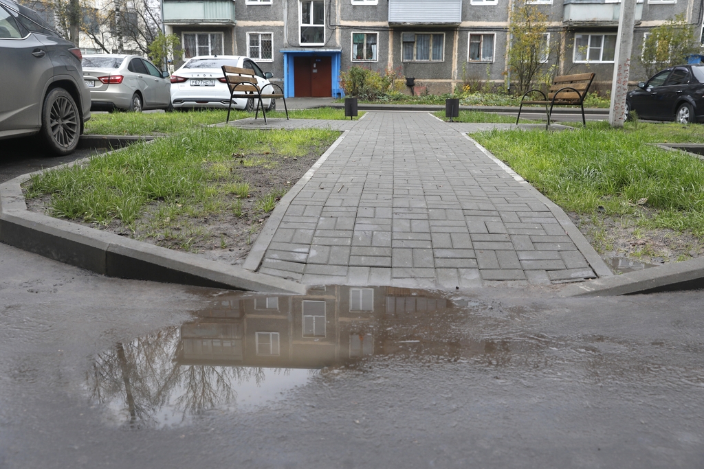Скопление луж и провалы в плитке: подрядчику придется устранить недостатки после своего ремонта в ярославском дворе