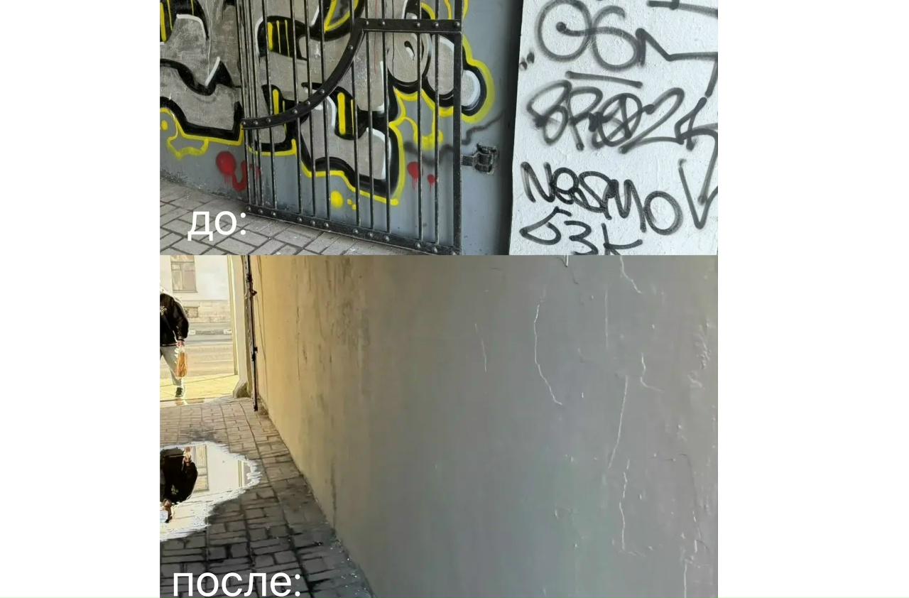 На данный момент граффити, оставленные уличными художниками, оперативно устранены силами ответственных за содержание фасадов лиц. Самих художников ищет полиция.