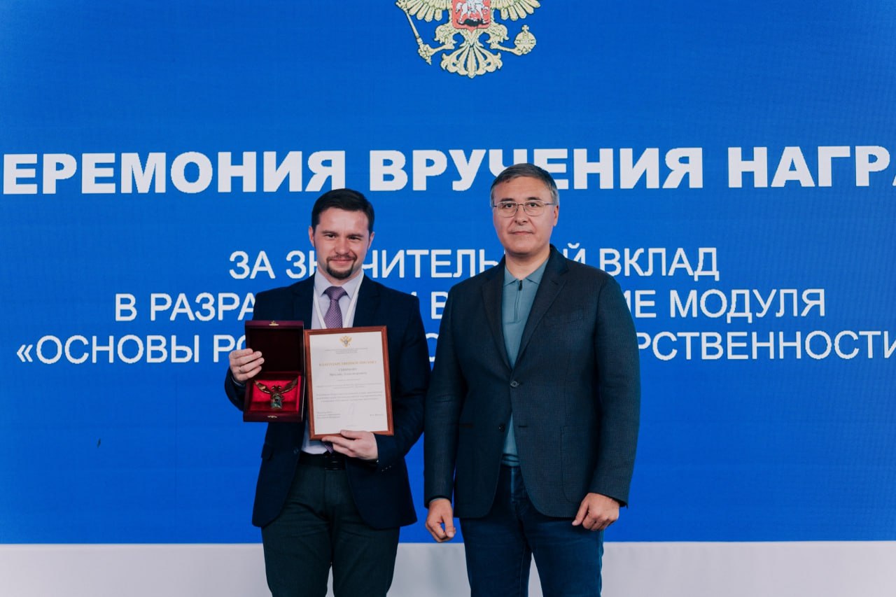 Министр науки и высшего образования РФ Валерий Фальков вручил благодарственные письма семерым победителям Всероссийского конкурса методических разработок по курсу «Основы российской государственности», подготовленного по поручению Президента Российской Федерации Владимира Путина. В числе награжденных – два сотрудника ЯрГУ имени П.Г. Демидова: заведующая кафедрой рекламы и связей с общественностью исторического факультета Виктория Марасанова и старший преподаватель кафедры социальной политики факультета социально-политических наук Ярослав Смирнов.