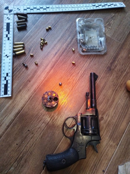 В ходе исследования сотрудники ЭКЦ УМВД по Ярославской области установили, что боеприпасы – самодельные патроны калибра 8,1 миллиметра. Они пригодны для стрельбы. Револьвер переделан самодельным способом из сигнального револьвера и пригоден для стрельбы.