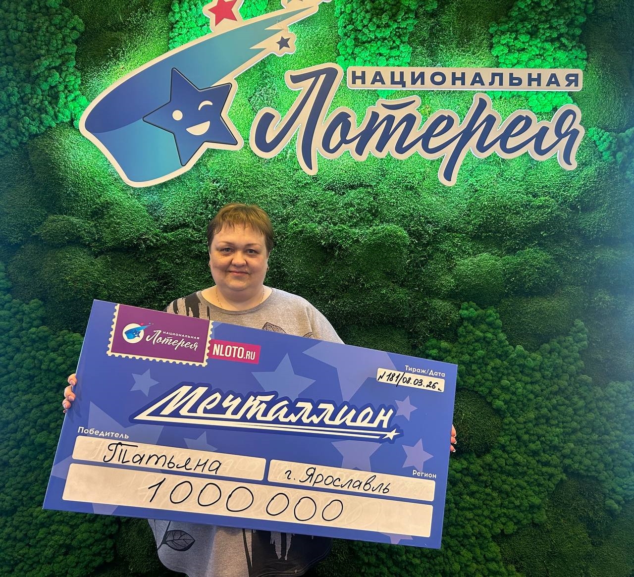 В Ярославле на одного миллионера стало больше. Воспитатель детского сада Татьяна выиграла один миллион рублей в лотерее «Мечталлион» к 8 Марта, сообщили в пресс-службе «Национальной Лотереи».