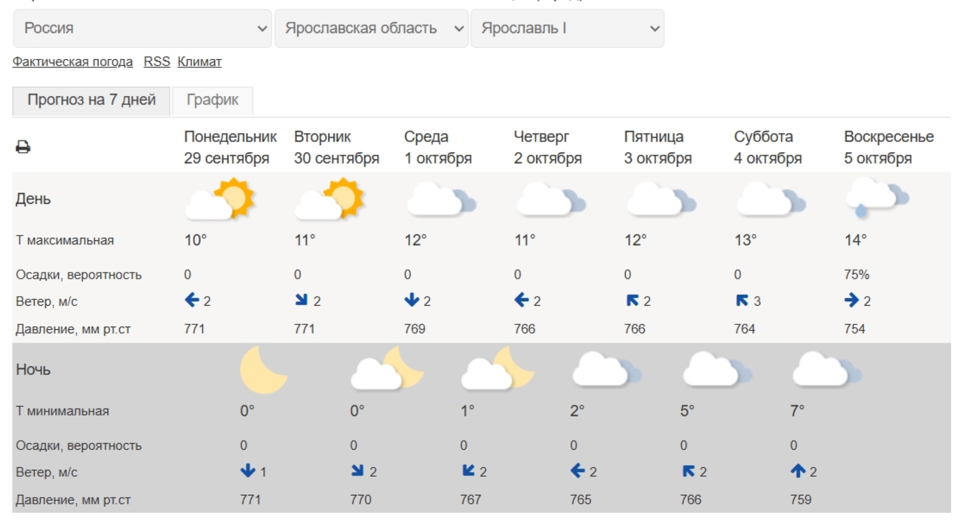 По данным Гидрометцентра, солнце больше будет радовать ярославцев первые два дня этой недели. К ее завершению ожидается небольшой дождь. Но при этом к выходным воздух прогреется до +14 градусов. В начале недели до +10.