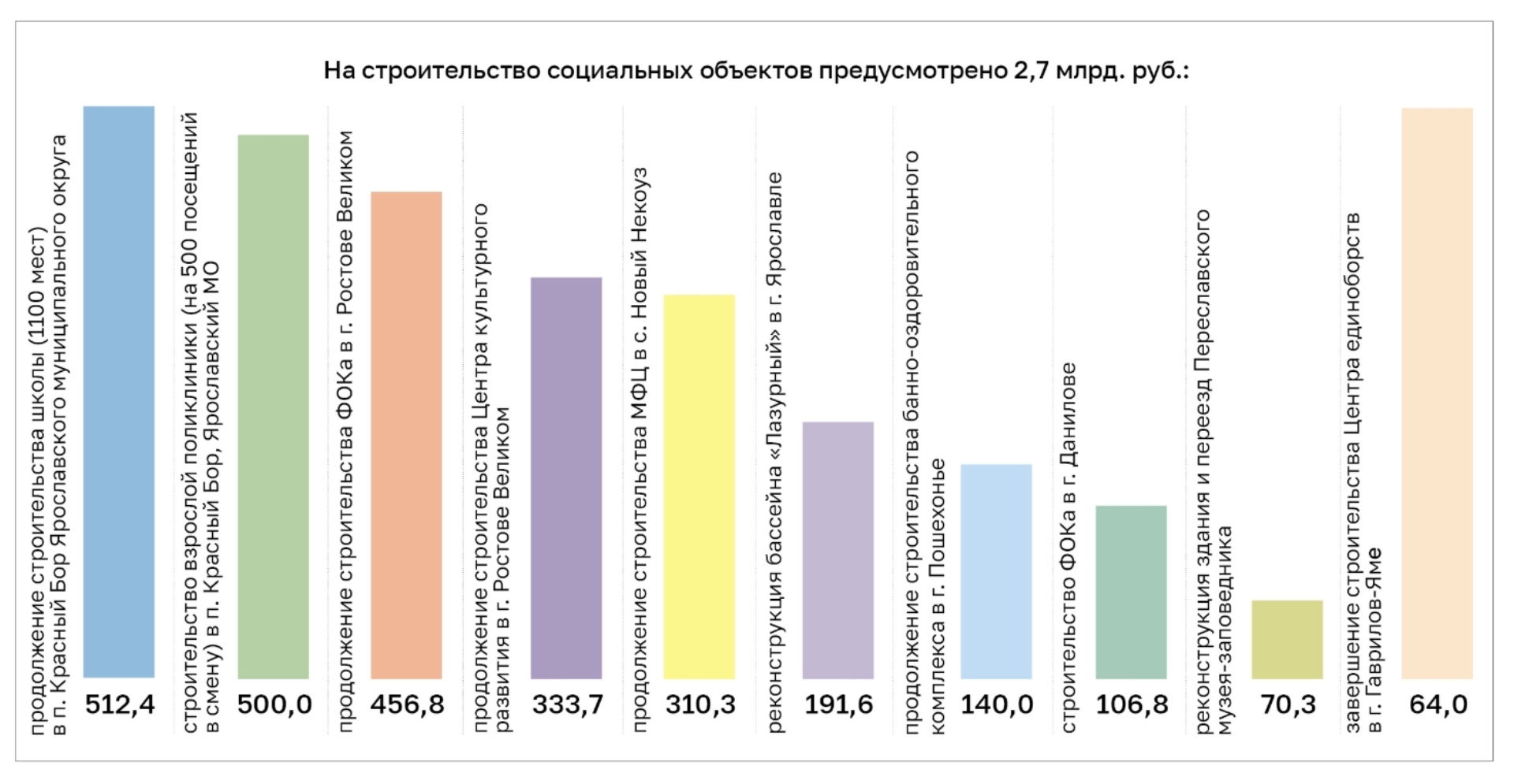 Значительная часть средств – 2,7 миллиарда рублей – предусмотрена на строительство и реконструкцию важных социальных объектов.