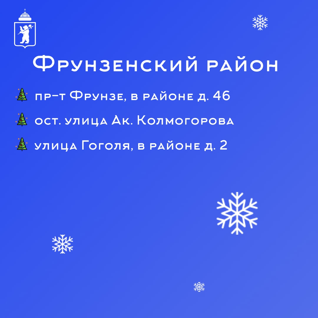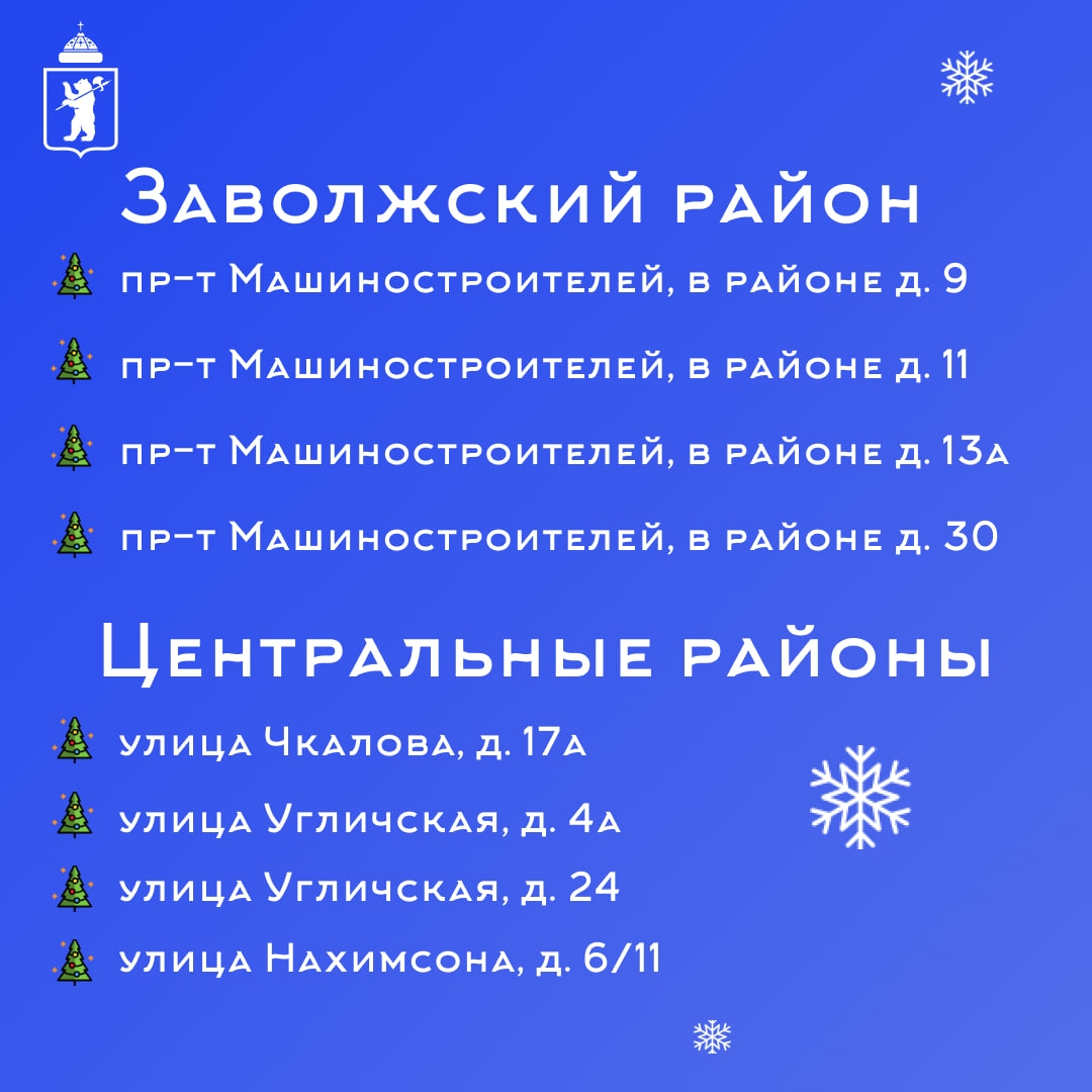 Всего будет действовать 16 точек. Больше всего в Дзержинском районе – пять, по четыре – в Заволжском и центральном районах, еще три – во Фрунзенском. Первая откроется 15 декабря на улице Чкалова,17а. Со всем адресами можно ознакомиться в карточках: