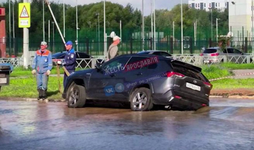 В Ярославле после дождя припаркованная машина провалилась под землю