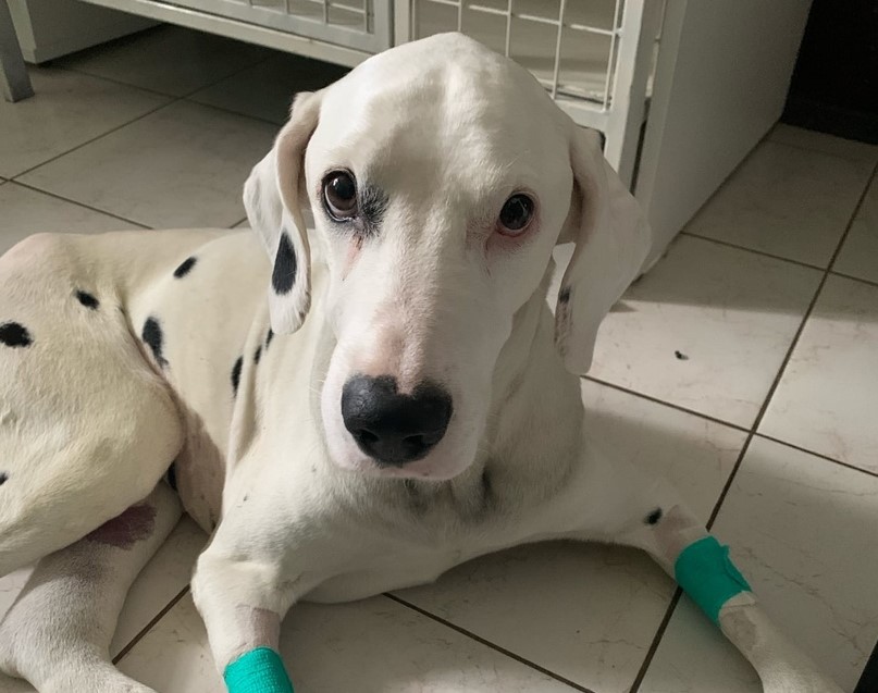 Далматина Марти прооперировали после того, как его выкинули с четвертого этажа. Лапу собаки собирали по частям. К счастью, сейчас пес уже даже начал ходить. Кроме того, у него появились новые хозяева. Как сообщает Светлана Азизова, взявшая Марти под опеку, ему долго не могли сделать операцию по причине плохих анализов.