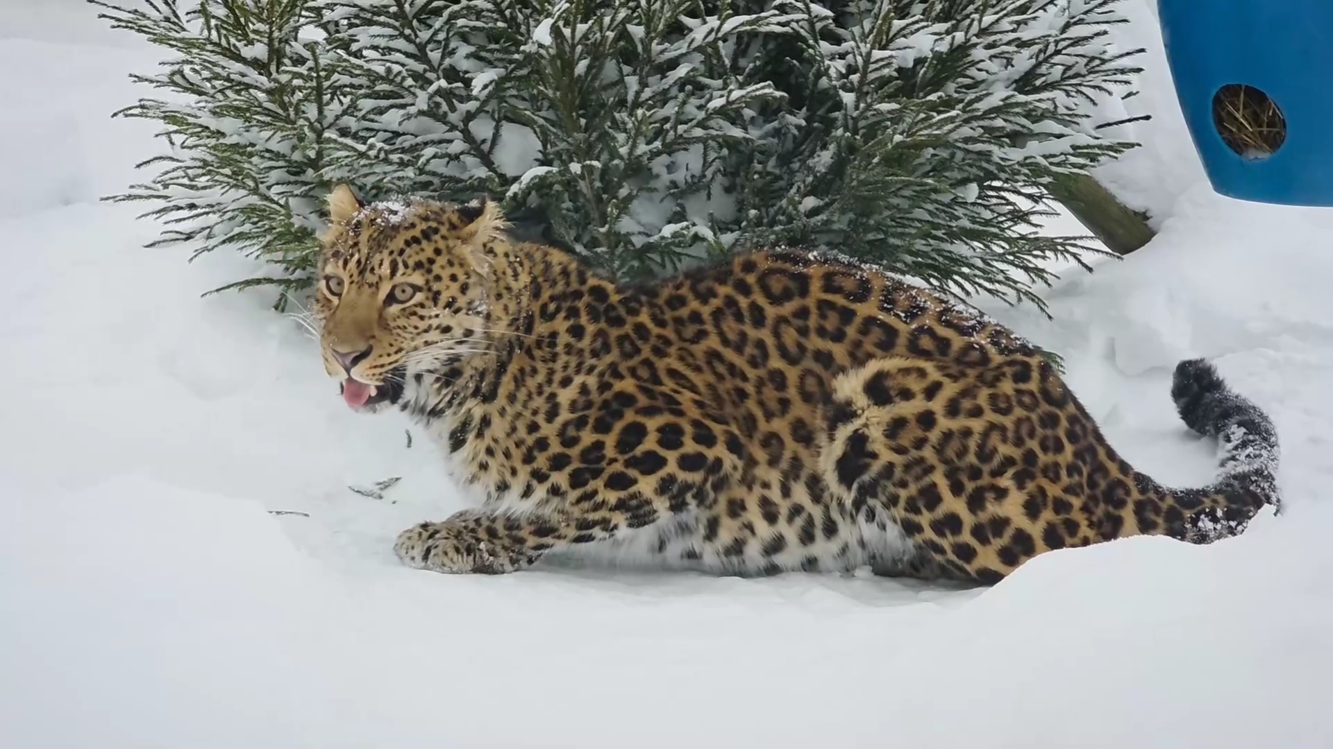 В Ярославском зоопарке леопард Амур распробовал елочку