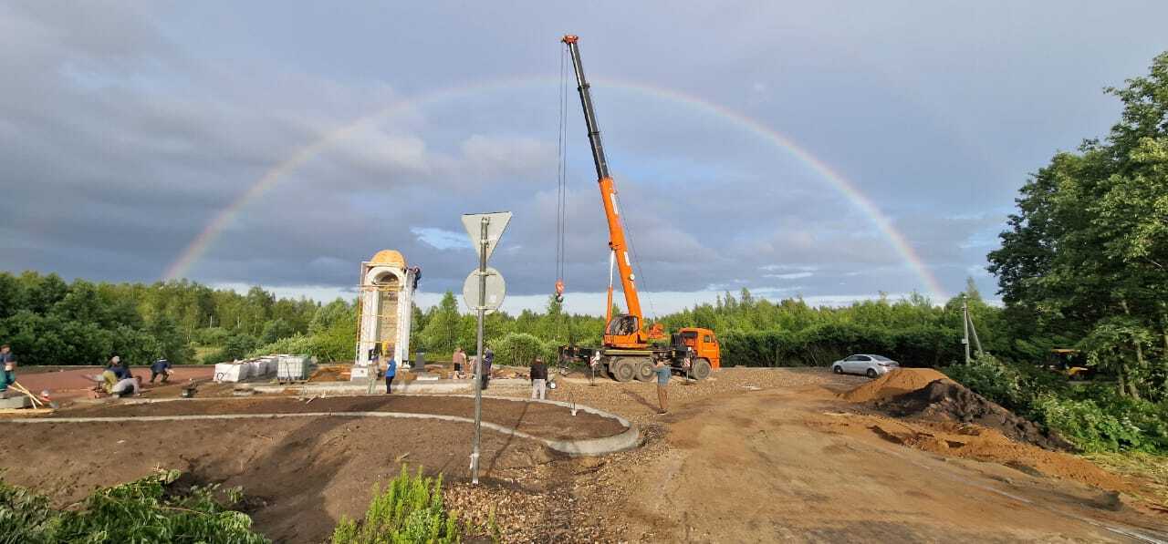 В Ярославской области подходит к завершению возведение часовни и благоустройство территории вокруг нее. Работы проходят на 201-м километре федеральной трассы М8.