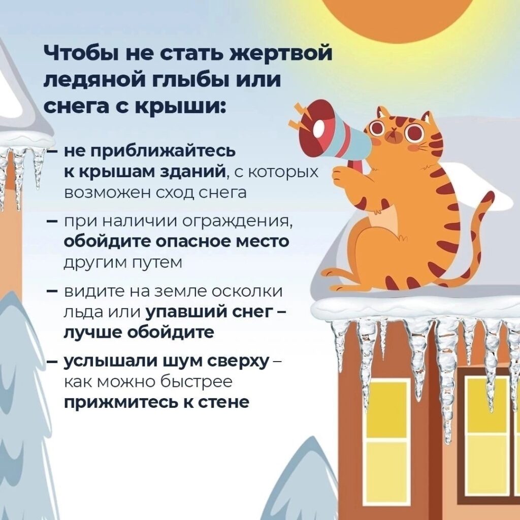 Уходя, зима оставила о себе память в виде огромных снежных шапок на кровлях домов. Время от времени массивы снега и глыбы льда с грохотом обрушиваются вниз, создавая угрозу жизни жителям и гостям региона. Кроме того, уже есть примеры обрушения кровель из-за того, что стропила не выдерживают мощной снеговой нагрузки.