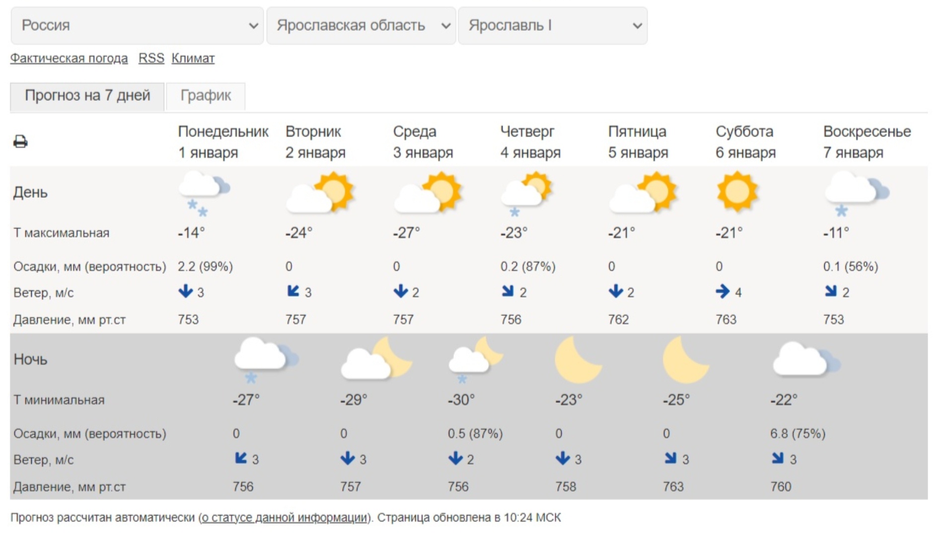 По данным Гидрометцентра в Ярославской области объявлен оранжевый уровень опасности в связи с холодами. Среднесуточная температура воздуха на 7 – 12 градусов ниже климатической нормы. Оранжевый уровень означает, что погода опасна, есть вероятность стихийных бедствий, нанесения ущерба. Также действует желтый уровень опасности из-за гололедицы и снежного наката.