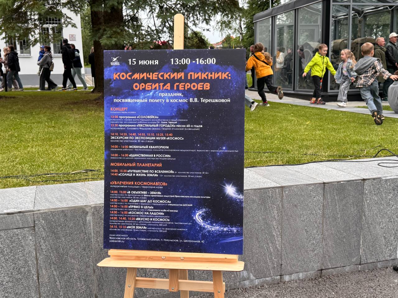 В преддверии 62-й годовщины полета в космос первой женщины-космонавта Валентины Терешковой в Ярославской области прошел праздник «Космический пикник: орбита героев». Он был организован в поселке Никульское Тутаевского округа, где находится музей «Космос».
