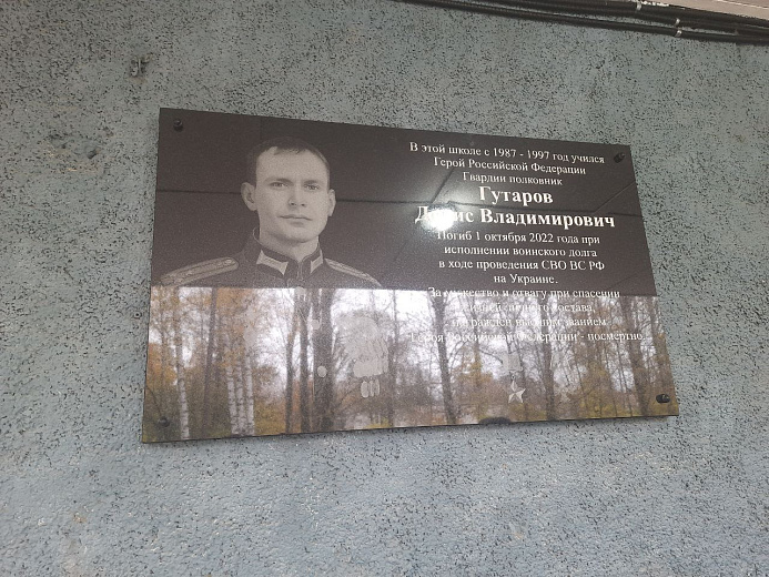 В Ярославле торжественно открыли мемориальную доску гвардии полковнику Денису Гутарову. Доска появилась на здании школы №11 в Дзержинском районе, где с 1987 по 1997 год учился военнослужащий.