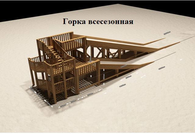 Деревянная всесезонная горка будет иметь две площадки для спуска – высотой 3 и 6 метров. Длина ската с верхней составит 22 метра, а с нижней – 11 метров. Зоны торможения выкатов оснастят резиновым покрытием. Гарантия на горку будет не меньше года.